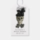 Gefallen sind die Anhänger mit einem sehr fein gekleideten Vintagen Schädel und einem dramatischen aquamarinen und schwarzen Damast-Muster.