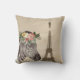 Stilvolles Kissen mit Vintagem sepia-tint Hintergrund-Foto des Eiffelturms mit einem wunderschönen Aquarellportrait mit Blumenkronen