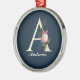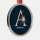 Extravagantes florales Monogramm A dunkelblau Ornament Aus Metall