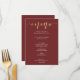 Extravagantes Hochzeitsmenü für Burgund und Gold Menükarte