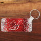 Eleganter silberner Glitzer mit Glitzern gegen ein Imitat klassisch hellrot gebürstete Metallfolienbild. Das extravagante extravagante Kalligraphie-Monogramm in Schwarz/Weiß in der Mitte kann individuell angepasst werden. Alle funkelnd und glänzenden Elemente in diesem modernen mädchenhaften Design sind digitale Grafiken. Mit Monogramm wertvolle Schlüsselketten-Gastgeschenke für ihre besondere Geburtstagsfeier. Eine schöne Größe für den Schlüsselring eines Mitarbeiters.
