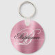 Ein Imitat klassisch hellrosa gebürstete Metallfolie Digital Art Grafik Bild. Das extravagante extravagante Klassik-Monogramm in Schwarz/Weiß in der Mitte kann individuell angepasst werden. Momentan sind beide Schriftart-Stile flämisch, aber Sie können den Namen in Great Vibes oder einen anderen femininen Skriptstil ändern. Mit Monogramm wertvolle Kreise prägen Schlüsselketten-Gastgeschenke für ihre besondere Geburtstagsfeier.