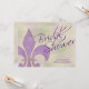 Feiern Sie die New Orleans Braut mit diesen Brautduscheinladungen mit einer lila Lilie mit Imitaten goldenen Perlen auf einem Aquarell-Hintergrund von lila, grünen und goldenen Mardi Gras Farben. Die Vorderseite liest BRAUTPARTY in einem extravaganten lila Skript. Fügen Sie den Namen der Braut auf der Vorderseite hinzu, und Ihre Duschinformationen auf der Rückseite.