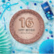 Girly Glitzer, Jahrtausende pink Hintergrund, mit extravagantem Skriptnamen Typografie. Imitate Rose Gold 16 Ballontext. Ideal für süße 16 Feiern.