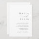 Eine schöne, minimalistische typografische Hochzeitseinladung mit Ihren Namen, die rechts in klassischer Serifenschrift ausgerichtet sind, verbunden mit der modernen Kalligraphie-Schriftzeichen-Akzent-Schrift. Personalisieren Sie Ihre Hochzeitsdetails unten. Unsere Aschenfarben geben eine klassische Note mit weichen schwarzen Schriftzeichen auf einem knusprigen weißen Hintergrund.