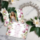 These charming quinceañera photo cards are available in both digital and physical formats, providing flexibility for sharing as you prefer. The physical option offers a refined finish, ideal for handing out in person, while the digital version allows you to send the floral princess crown invitations easily via email or social media without losing any of their charm.