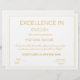 Personalisiertes White and Gold Certificate of Excellence in English Achievement Award