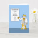 Cartoon Kätzchen in einem weißen Mantel, das auf eine Augenkarte zeigt, in der steht: "Wünschen Sie sich eine schnelle Erholung aus der Operation".