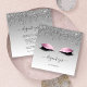 Diese elegante Makeup-Künstler-Visitenkarte verfügt über ein Paar rosa Glitzer Augen auf einem silbergrauen ombre Hintergrund, mit einem obersten Rand des tropfenden silbernen Imitat Glitzer. Passen Sie ihn an mit Ihrem Firmennamen in schwarzen Handschriftenskripten mit Swashes am Anfang und Ende und Ihren Kontaktinformationen in schwarzen Sans Serif Schriftart. (Um die Swashes behalten, ersetzen Sie nur die Buchstaben in diesen Textfeldern, indem die Symbole verlassen werden.)