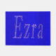 Auf blauem Mosaik abgebildet ist ein blaues Ezra-Logo.