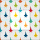 Ein klassisches, primär gefärbtes Schlagadlermuster auf weißem Stoff ist eine niedliche und unterhaltsame Möglichkeit, Kampfflugzeuge in Ihre Handwerksprojekte für Ihre Kleinen einzubinden.