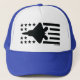 Lassen Sie Ihren Patriotismus mit dieser Baseballkappe im LKW-Stil mit einem F-22 Raptor Kampfflugzeug, flankiert von schwarzen US Flagge, und von der Flagge der USA. Merica!