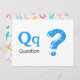 "Letter Q is for Question" in unserem Alphabet Flash Card Set. Holen Sie sich alle 26 Buchstaben des Alphabets! Eine doppelseitige Postkarte, die sich ideal für Gedächtnisspiele und Lehre eignet, für Bildung, Schulen, Lehrer und Hauslehrer für Kindergarten und Babys. Alle Texte können bearbeitet werden, wenn Sie sie anpassen müssen.