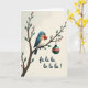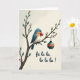 This cute card has a pretty picture that feels like it's full of holiday joy 🎅🏼. In the middle, there's a bluebird with bright blue feathers, sitting on a branch with green leaves and red berries 🎄. The bird's eyes look big and innocent, with a tiny red ornament in its beak 🎁. Hanging from the branch is a big, green ball with red and white stripes. The background is a soft, pale color that makes the bird and decorations stand out. At the bottom, the words "fa la la, la la la!" are fancy and fun, like a song. This card is perfect for spreading cheer during the holidays!