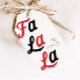 Dieses Weihnachtsgeschenk-Tag enthält den Satz "Fa La La", mit Vintag inspirierten Ferienfarben und lustigen Bio Typografie.