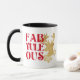 This Fab-Yule-Ous Christmas morning coffee mug features red bold, modern, minimalist script typography, a festive golden Christmas reindeer and gold snowflakes. This coffee mug makes a perfect Christmas stocking stuffer gift for mom, wife, sister or anyone else on your list. The two-toned colored mug is customizable so you can make it your own.