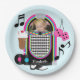 Geburtstags-Papier-Teller 50er des kundenspezifischen Fotos kennzeichnet fabelhafter einen alte Art Jukebox, rosa hängenden angefüllten Würfel, musikalischen Anmerkungen, einen Sattelschuh, ein Schokoladenmalz, Rekord45s und einen Bereich, die Sie einen Foto- und Geburtstagsmädchennamen addieren können! Wir haben die zusammenpassenden 50ergeburtstagseinladungen!