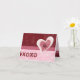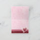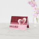 Valentinstag-Grußkarte im Scrapbook-Stil mit X's und O's, rosa Band, Papier oder würzigen Herzen mit Knopf- und Blumenmuster innen und außen.