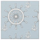 Weiße Schiffsrumpe in der Mitte mit Ankern und Seilen in den oberen rechten und unteren links Ecken. Mittlerer blauer Hintergrund kann angepasst werden.
