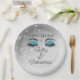 Feiern Sie den 50. Geburtstag Meilenstein mit diesen eleganten und glamourösen Tellern aus Schwarz und Aqua. Verziert mit aqua glitzernden Augen und Glitzern mit Diamanten. Personalisieren Sie es mit einem Namen. Erstellt von der einfachen Bauernpresse auf Zazzle.