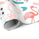 Fünfzig Flamingos mit Retro-Dekorationen der Zeit wie ein Atom und zufällige Rechtecke. Geometrische Stücke und Teile waren sehr in.