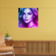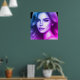 A young woman in red, blue and purple on a poster for your bedroom, living room or office walls.
