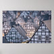 Plakatdruck der historischen Baukunst der Fachwerkhäuser mit Rauchschornsteinen und die Lichter am Beginn des Abends im Winter in der Stadt Freudenberg bei Siegen in Deutschland.