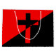 Dieses Design zeichnet sich durch eine Christliche sozialistische oder anarchistische Politik aus. Christlicher Sozialismus ist eine religiöse und politische Philosophie, die links Politik und sozialistische Ökonomie auf der Grundlage der Heiligen Bibel und der Lehren Jesu von Nazareth unterstützt. Viele Christliche Sozialisten halten den Kapitalismus für göttlich und verwurzelt letztlich in der Sünde der Gier. Christlicher Anarchismus ist eine Bewegung in politischer Theologie, die behauptet, Anarchismus sei dem Christentum und den Evangelien inhärent. Die Ideologie gründet auf dem Glauben, dass es nur eine Quelle der Autorität gibt, der die Christen letztlich verantwortlich sind, nämlich die Autorität Gottes, wie sie in den Lehren Jesu Christi verkörpert ist. Daher lehnt sie die Vorstellung ab, dass menschliche Regierungen legitime Autorität über menschliche Gesellschaften haben. Die meisten Christlichen Anarchisten sind Pazifisten, die Krieg und den Einsatz von Gewalt ablehnen. Die Fahne des Christlichen Anarchismus und Sozialismus kennzeichnet das traditionelle rot-schwarze Design anarchistischer Politik, das mit einem Christlichen Kruzifix überlagert wurde. Das Flag-Design basiert auf vorhandenen Kunstwerken (https://commons.wikimedia.org/wiki/File:Christian_Socialism_Anarchism.svg).