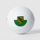Golfbälle mit variantenreicher sächsischer Flagge; Design mit zwei waagerechten Bändern in Grün und Weiß und mit dem Wappen des Staat in der Mitte