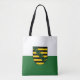 Tote Bag mit variantenreicher sächsischer Flagge; Design mit zwei waagerechten grünen und weißen Streifen und mit dem Wappen des Staat in der Mitte