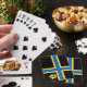 Poker spielen mit Design mit einer Fahne des historischen Landkreises von Kaithness in Schottland, Großbritannien; schwarze Fahne mit blauem und gelbem nordischem Kreuz und eine Abbildung eines Schiffes mit einem Rabe auf seinem Segel in der oberen Fahne