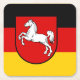 Untersetzer mit niedersächsischer Fahne; Design mit horizontaler Trikolore aus Schwarz, Rot und Gelb (golden), mit dem Emblem des Staat mit der Abbildung eines weißen Pferdes in der Mitte