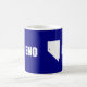 Tasse mit der Fahne der Stadt Reno, Nevada; blaue Fahne mit der weißen Form von Nevada, die die Lage von Reno im Staat symbolisiert