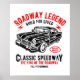 Feiern Sie das goldene Zeitalter der Geschwindigkeit mit diesem kühnen Oldtimer-Design. Dieses Poster mit klassischem Muskelwagen und Retro-Typografie eignet sich perfekt für Autoverliebhaber, Rennfans und Garagendekorationen. Fügen Sie Ihren Wänden mit diesem auffälligen Kunstwerk eine Touch alter Pferdestärken hinzu.