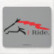 Reiter sind Athleten! Mit unserem "I Ride" unterstützen Sie Ihren Sport. T Shirts und mehr! Dieses Bild zeigt Text mit "I Ride" und ein Bild eines Pferdekopfes mit fließendem Mane. Das ist ein großartiges Geschenk für Reitliebhaber.