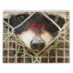 Das traurige Aussehen eines Waschbads, das hinter dem Käfig gefangen ist, der von Freiheit träumt