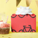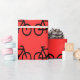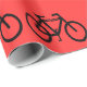 Dieses Verpackungspapier kennzeichnet einen zeitgenössischen Entwurf eines abstrakten Musters, das schwarze Fahrräder auf einem roten Hintergrund wiederholt. Die Hintergrundfarbe kann leicht besonders angefertigt werden.