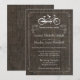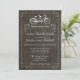 Rustikale Holz-Blick Hochzeits-Einladungen. Tandemfahrrad errichtet für 2 mit Vintagen gelockten Verzierungen und Rollerahmen. Lässige handgeschriebene retro Kreidetypographie macht es perfekt für rustikale Bauernhof- oder Land-Anwesenhochzeiten, aber mit einigen Änderungen können Sie einen völlig anderen Auftritt schaffen, der für die traditionellen oder modernen Hochzeiten mit einer Touch des hoch entwickelten Charmes für die zeitgenössische Braut und den Bräutigam passend ist. Bedienungsfreundliche vielseitige Schablone kann für die formalen oder halb-formalen Hochzeiten geändert werden. Klicken fertigt sie besonders an, um Schriftart, Farben und Größe zu ändern des Schriftartes. Treten Sie mit uns bitte für Hilfe bei der Kundenbezogenheit in Verbindung oder, wenn Sie zusätzlichen Raum für Ihre Hochzeitsdetails benötigen.