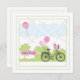 Diese Fahrradgeburtstagseinladung ist während irgendeines Alters von 16 bis 100 perfekt! Fertigen Sie das Alter auf dem Ballon, Mitteilung auf der Fahne und die Partyinformationen über die Rückseite besonders an.