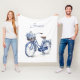 Aquarellmalerei eines Fahrrads mit einem Korb voller Blume in Delft Blue