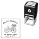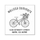 Eine einfache Abbildung eines Frauenfahrrads. Der Korb ist mit Blume gefüllt. Die Adresse ist anpassbar.