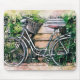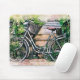 Fahrrad und Korb im Garten. Eine lustige Fahrt aus der Vergangenheit. frontiernow.com
