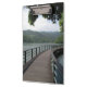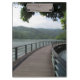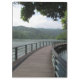 Ruhige Lage einer Fahrradbrücke, die sich über einen Stausee erstreckt. Ideal Foto, um eine inspirierende Botschaft hinzuzufügen.