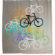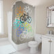 Ein dekoratives buntes Fahrrad, das gegen ein Weiche abstrakt ist, schattierte beige Hintergrund.