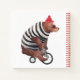 Dieses Design zeigt eine Aquarellbilder eines Bären auf einem Fahrrad, der einen gestreiften Pullover und einen roten Hut trägt.
