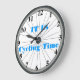 Eine seitliche Sicht auf ein Fahrradrad bildet die Grundlage für diese Wanduhr, in der Mitte steht der Begriff "Es ist Fahrradzeit". Diese Wörter können von Ihnen angepasst werden.