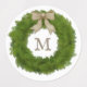 Dieses Label hat einen hübschen immergrünen Zypressenkranz mit einem Schleifenband in einem Bogen. Passen Sie es mit Ihrem Monogramm oder einem beliebigen Buchstaben Ihrer Wahl an.