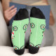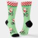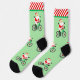 Kreative Radfahrer Weihnachtssocken mit lustigen Weihnachtsradfahrern, die ein Fahrrad abwärts fahren.