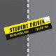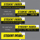 Ein schwarzer und gelber Aufkleber, um andere Fahrzeuge zu warnen. "Fahrschüler" wird in fetter Schrift geschrieben. Fügen Sie den Namen und die Telefonnummer Ihrer Fahrschule in der zweiten Zeile hinzu.