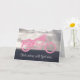 Diese Beileid-Karte verfügt über ein rosa Motorrad in Silhouette gegen einen bewölkten Himmel, in dem die Sonnenstrahlen durchleuchten. Es wurde entwickelt, um das Leben und den Komfort der Familie eines Ladys Biker zu ehren. Der Satz unter dem Motorrad lautet: Sie fährt jetzt mit Gott. Das Fahrrad sitzt auf einer dunkelschwarzen Oberfläche. Eine nachdenkliche Art, sich an eine Frau zu erinnern, die ein Christliches Fahrrad war.